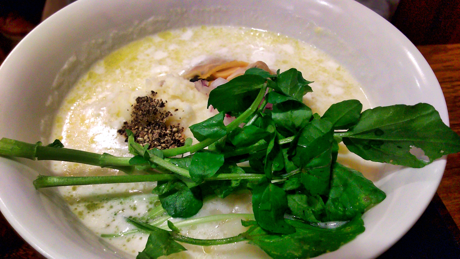 定期的にお邪魔していて、このブログでも何度か紹介したことがある福島県福島市の「ラーメンHOME」。季節ごとに限定ラーメンが登場するんですが、この冬は何と「クラムチャウダーヌードル」! 思わず紹介したくなりました。